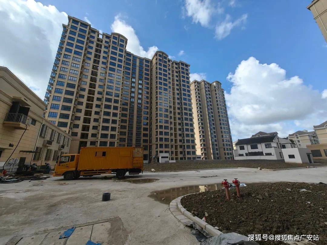 现在,从现场的施工情况来看,整个小区已经处于一个准现房的状态。建筑的外立面和玻璃窗也都已经弄得差不多了,但是小区内部绿化还在施工建造中。