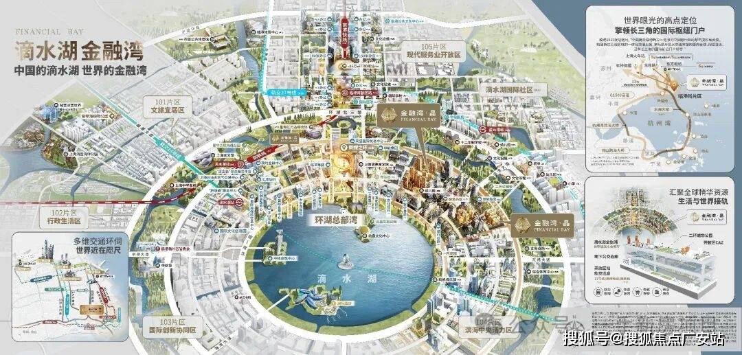 上海跨境电子商务示范园区等国家级要素市场集聚金融湾,将建设成为跨境资产管理示范区。约2公里烫金走廊 约360万㎡总部湾经济动脉约2公里金融湾,将发展跨境金融服务、新型国际贸易、高端国际航运、国家级要素市场等高端产业。规划约360万方融合环湖总部办公、高品质住宅、高端商业体、高品质教育等多元业态的城市综合体,是新片区跨境金融总部集聚、金融业务创新的承载区,云集大批头部金融机构,将对标全球顶级金融中心,成为中国金融开放与创新发展的前沿高地。