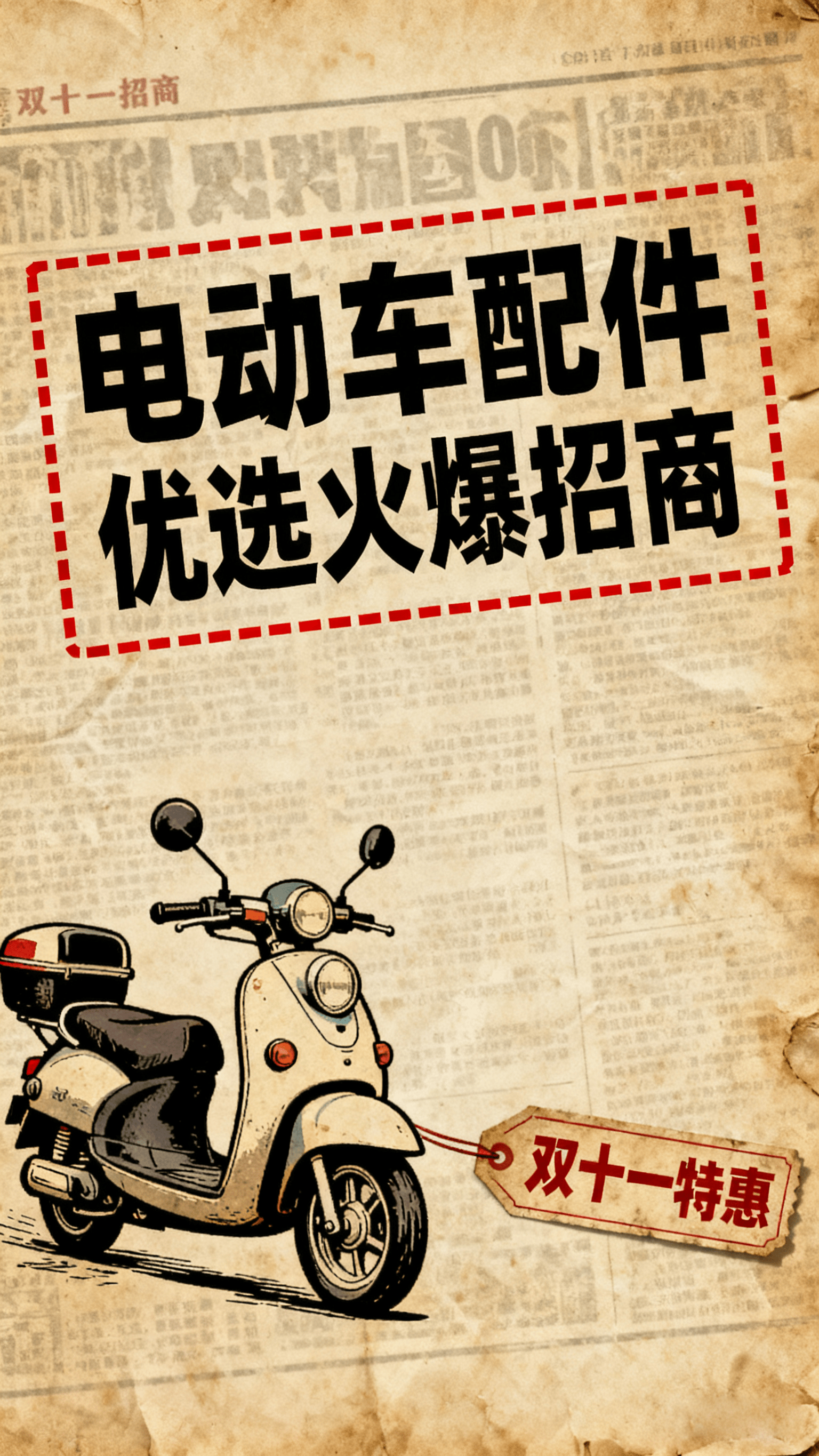 双十一有着 “流量井喷、优惠密集、消费热情高涨” 的鲜明特色,我们平台深度契合这些特点,为电动车配件商家量身定制全方位赋能方案。多渠道流量引爆,精准触达目标客群:双十一期间,平台将投入超千万推广资金,联动抖音、快手、淘宝、京东等主流平台,通过 “短视频场景化种草 + 主播专业带货 + 关键词搜索置顶” 的立体推广模式,把电池、轮胎、刹车组件、智能充电桩等热门配件精准推送给有更换、升级需求的车主。针对车主应急维修的迫切需求,平台开通 “周边配件极速达” 服务,整合全国 3000 + 线下合作门店,实现 “线 小时内配件送达”,牢牢抓住即时消费流量。