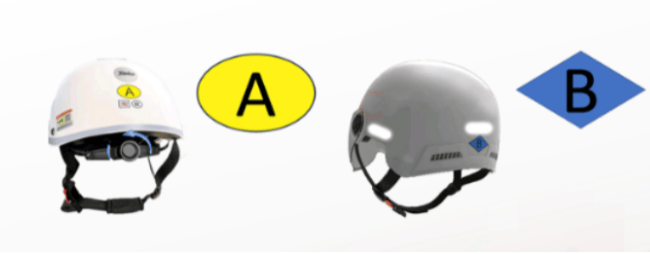 其次是摩托车乘员头盔后部标识为“黄色椭圆形图案+字母A”,电动自行车乘员头盔后部标识为“天蓝色菱形图案+字母B”,A类头盔摩托车、电动自行车乘员都可以使用,B类头盔仅限电动自行车乘员使用。