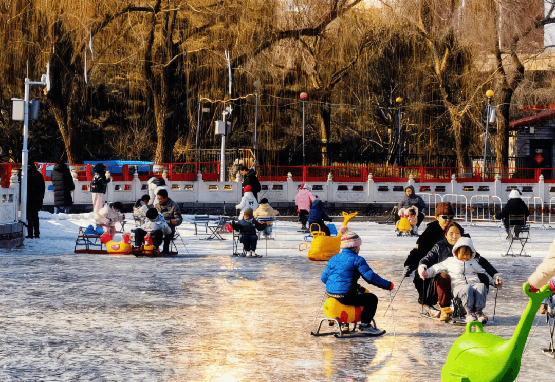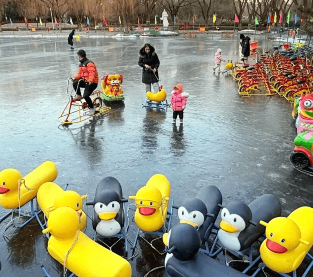 ✨游玩亮点:提供单人冰车、双人冰车、三人龙、海豚等十余种冰上“坐骑”,可随意更换体验,还有狗拉雪橇、拖拉机、小飞碟等电动冰上项目。公园东门外有太熟悉、紫光园等家常菜馆,各种火锅、烤肉等美食选择丰富。