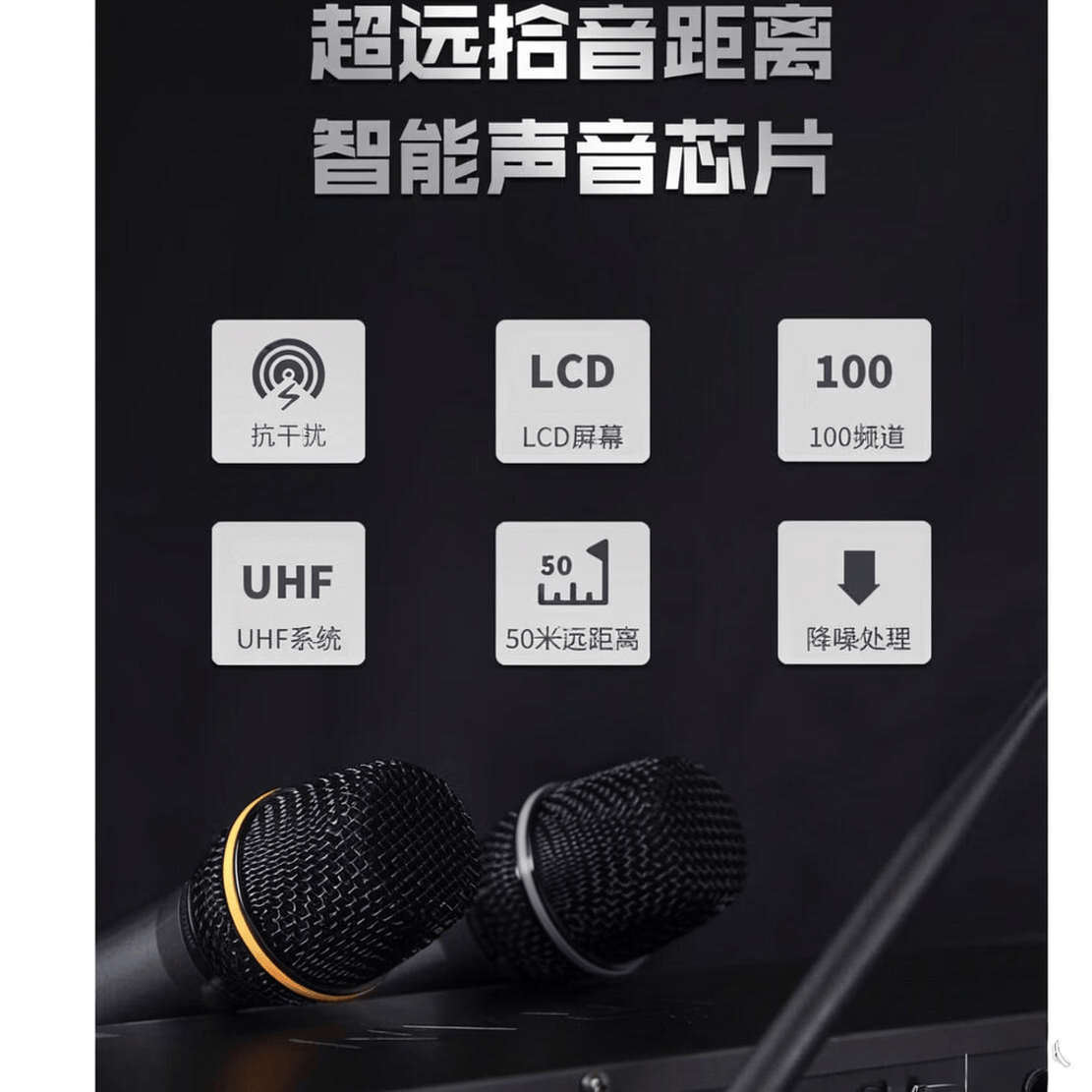 双话筒设计提升了互动体验,适合多人使用,非常适合会议、演讲和KTV活动,让每个人都能参与其中。