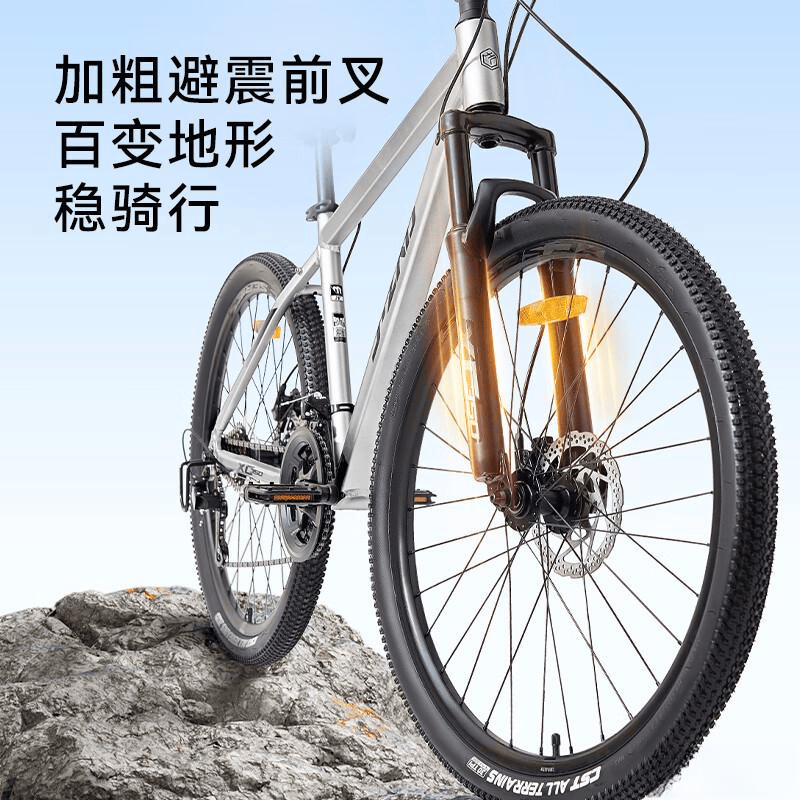 这款麦希MX530山地车的高碳钢加厚车架确保了整体的坚固耐用,日常骑行中稳当,机械焊接工艺让车身更加结实。即使在复杂地形下,也能提供一定的支撑,少了担心变形的问题。虽然较重,但在越野或长途骑行时还是值得考虑。