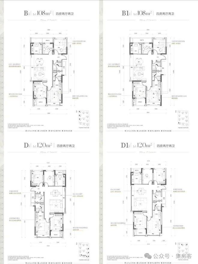 建面约108㎡、120m²的四房边套设计,不仅面积宽敞,南向双卧室+客厅大飘窗的设计也提升了居住舒适度。